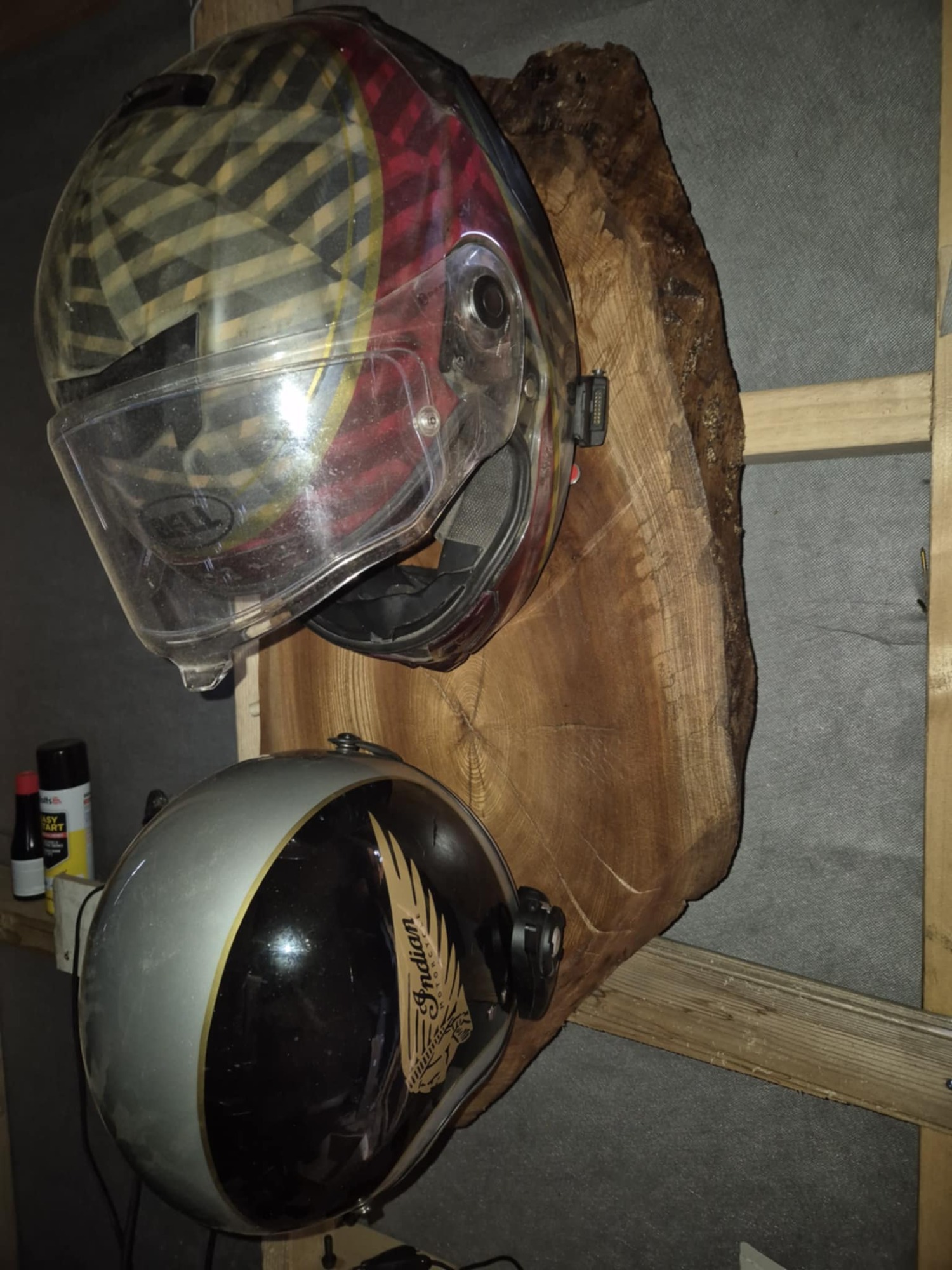 This stylish wall bracket brings a touch of class to your home and provides a safe and stable place to keep two motorcycle helmets.